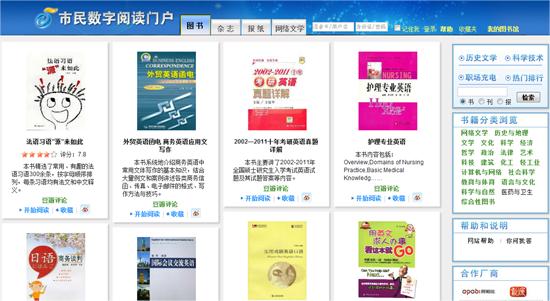 作為上海圖書館的戰(zhàn)略合作伙伴,多年來方正為上海圖書館提供多角度、多方位的創(chuàng)新型數(shù)字閱讀方案,諸如首家手持閱讀器外借計劃、首家電子報欄服務、跨平臺移動閱讀綜合解決方案等等。而“市民數(shù)字閱讀網站”,作為上海市民數(shù)字閱讀推廣計劃的服務平臺,則有效的整合了館藏的書、報、刊、多媒體等百萬種數(shù)字資源,支持電子書閱讀器、平板電腦以及手機等各類移動設備的智能識別,以盡可能方便快捷的“友好”界面,給讀者最好的閱讀體驗,為廣大讀者打造一站式的閱讀平臺,滿足讀者對移動閱讀的迫切需求。